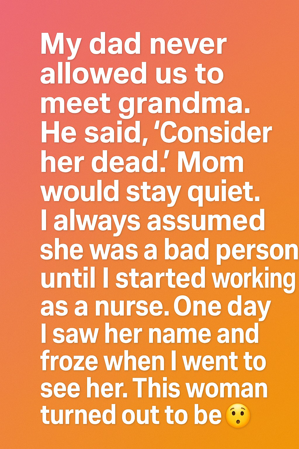 My dad never allowed us to meet grandma. He always said, “Consider her dead,” whenever I asked about her. Mom would just stay quiet, her eyes heavy with something I didn’t understand. Growing up, I assumed my grandmother must have been a terrible person. Why else would my dad cut her off completely?