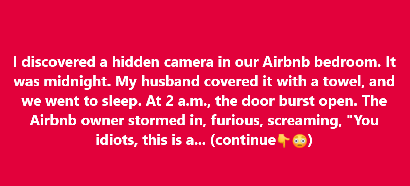 I discovered a hidden camera in our Airbnb bedroom. It was midnight. My husband covered it with a towel, and we went to sleep. At 2 a.m., the door burst open. The Airbnb owner stormed in, furious, screaming, “You idiots, this is a security system, not a toy!”