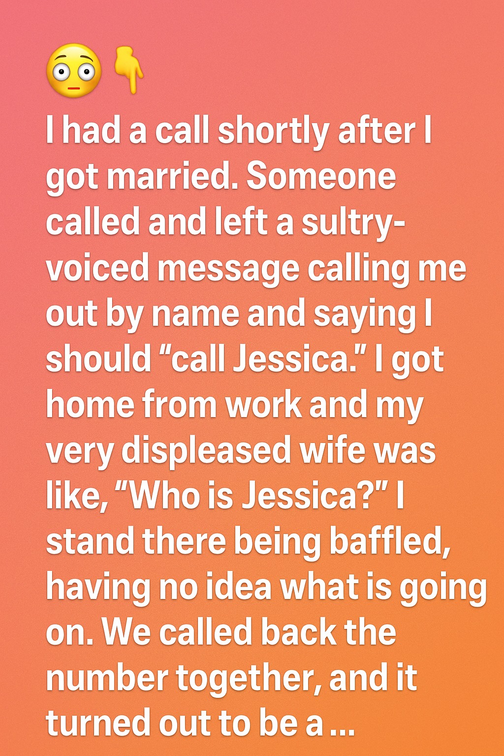 I had a call shortly after I got married. Someone called and left a sultry-voiced message calling me out by name and saying I should “call Jessica.” I got home from work and my very displeased wife was like, “Who is Jessica?” I stood there completely baffled, having no idea what was going on. To clear things up, we decided to call the number back together. On the other end, a cheerful woman answered—not “Jessica,” but a representative from a local bridal shop.