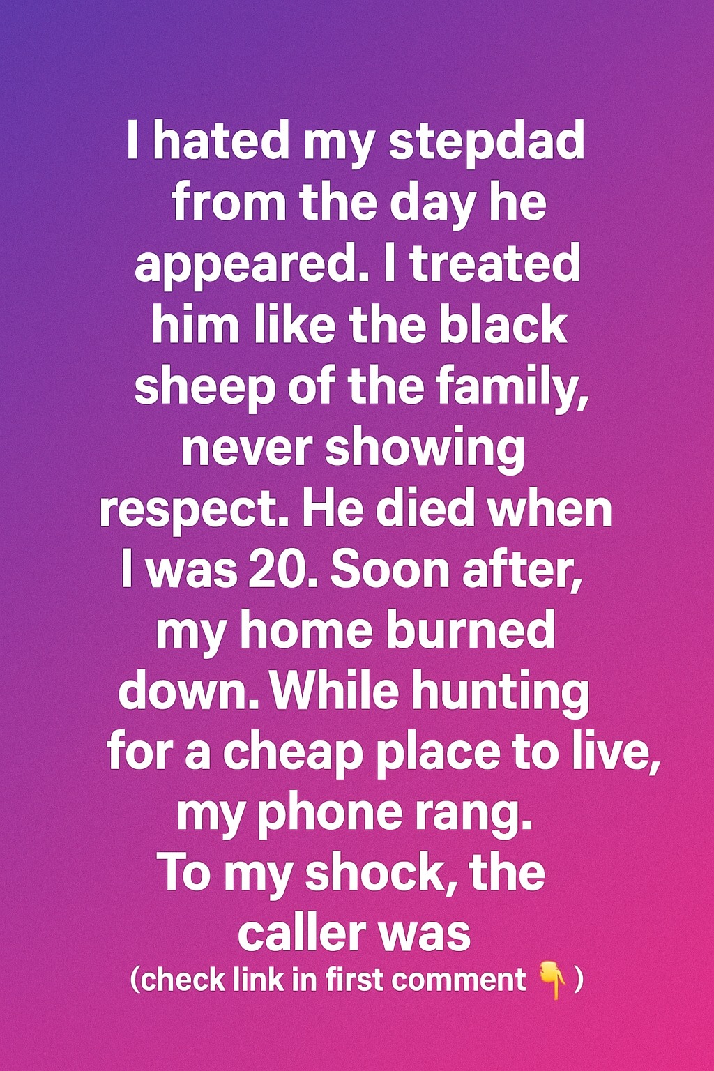 I hated my stepdad from the day he appeared. I treated him like the black sheep of the family, never showing respect. He died when I was 20. Soon after, my home burned down. While hunting for a cheap place to live, my phone rang. To my shock, the caller was his lawyer.