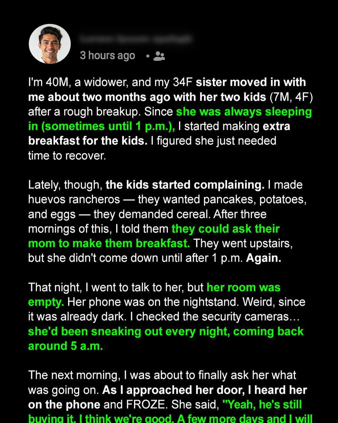 After my sister’s difficult breakup, I opened my home to her and her two kids, hoping to give them a safe and peaceful place to heal. I’m Mike, 40, a small-town mechanic who’s learned to live quietly since losing my wife, Sweeney, four years ago. My house had been calm and simple — just coffee, pancakes, and music on Sunday mornings — until Jenny called one night in tears, asking if she and the kids could stay for a while. Of course, I said yes. Family comes first.