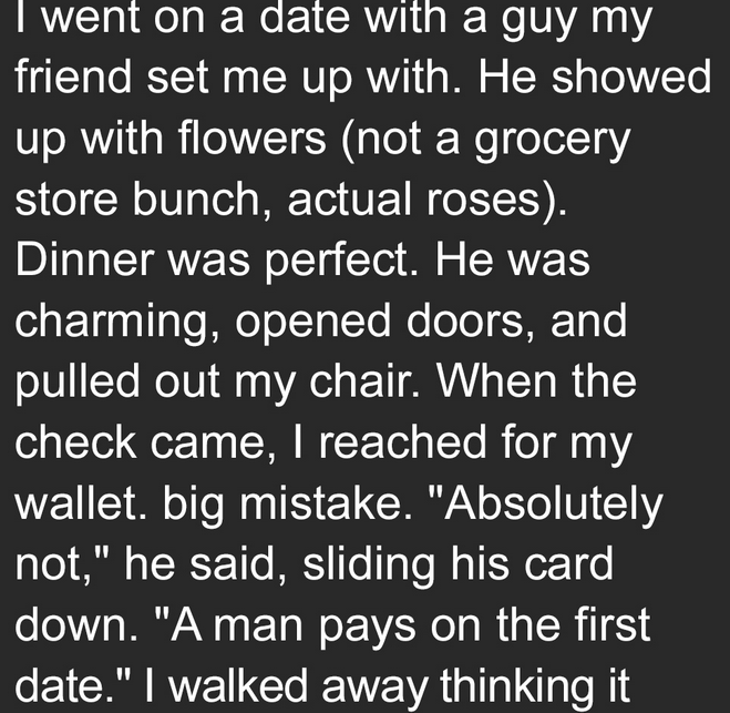 When the bill arrived, he firmly insisted on paying, saying, “A man covers the first date.” His tone surprised me slightly, but I let it go and thanked him. I went home smiling, thinking I’d just had one of my best first dates ever. The next morning, I was excited to see a message from him, assuming it was a sweet follow-up. Instead, it was a detailed invoice.