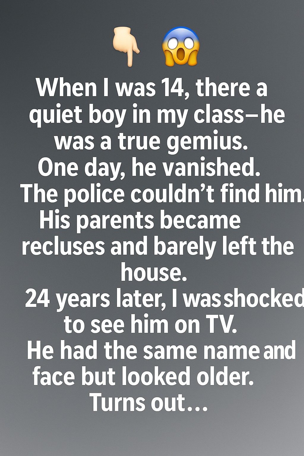 When I was 14, there was a quiet boy in my class named Daniel. He was brilliant — the kind of genius teachers whispered about, saying he was “meant for something big.” He rarely spoke but always helped others with calm kindness. One day, he simply stopped coming to school. The police searched, rumors spread, and his devastated parents withdrew from everyone.
