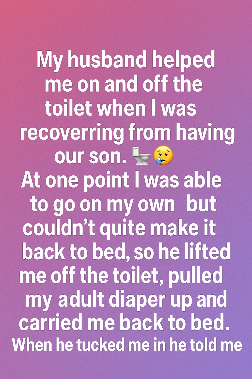 At one point I was able to go on my own but couldn’t quite make it back to bed, so he lifted me off the toilet, pulled my adult diaper up, and carried me back to bed. When he tucked me in he told me… That this moment was one of the reasons he loved me even more. I was embarrassed, fragile, and exhausted from childbirth, but he looked at me like I was the strongest person he knew.