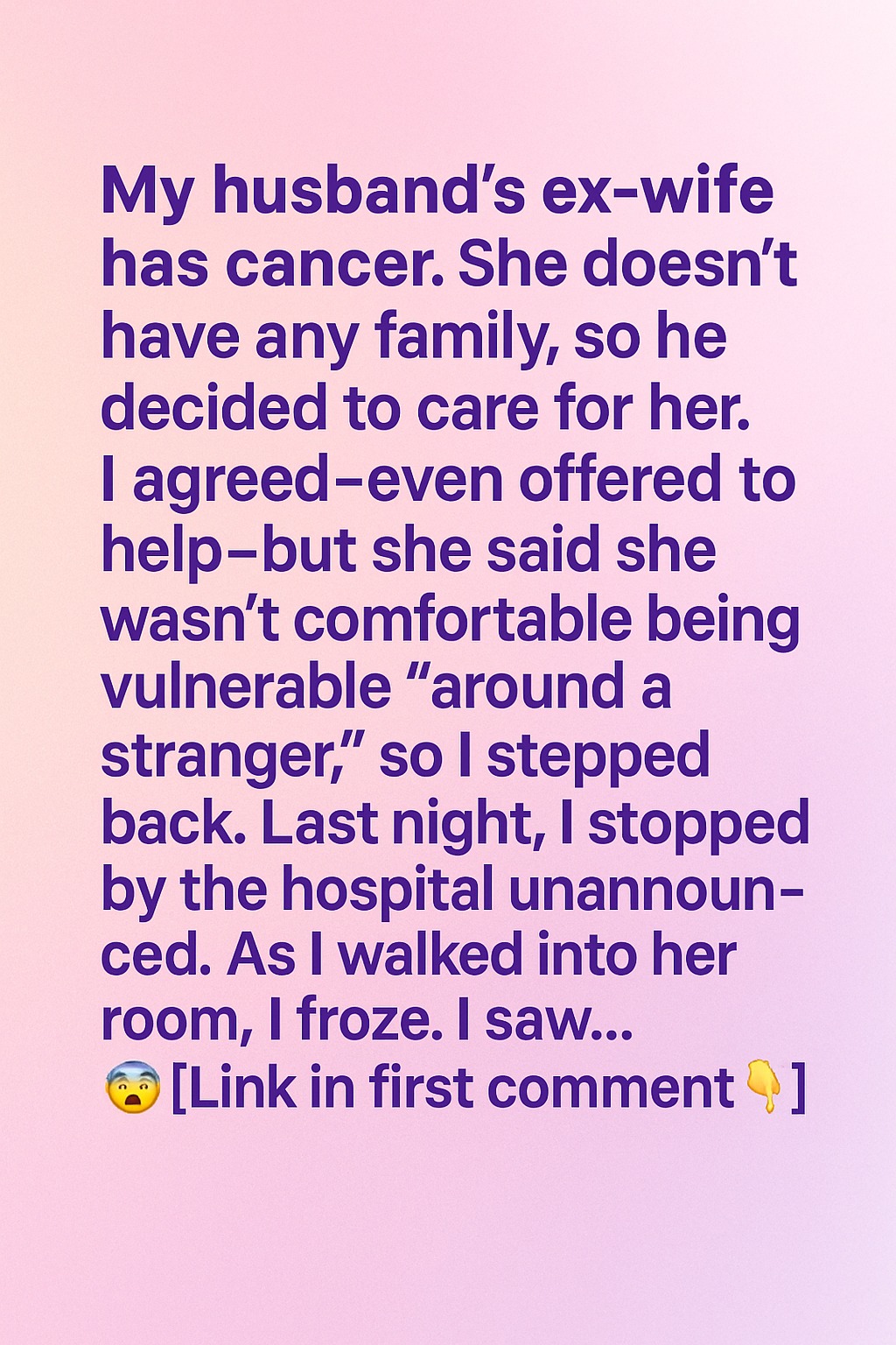 When my husband told me his ex-wife, Clara, had been diagnosed with cancer and had no close family to help, he decided to take care of her. I agreed, even offering to help, but Clara politely said she felt uncomfortable being vulnerable around someone she barely knew. I stepped back to respect her feelings, even though it made me feel slightly left out. My husband spent many evenings at the hospital, assuring me it was simply compassion. Still, a quiet worry lingered in my mind.