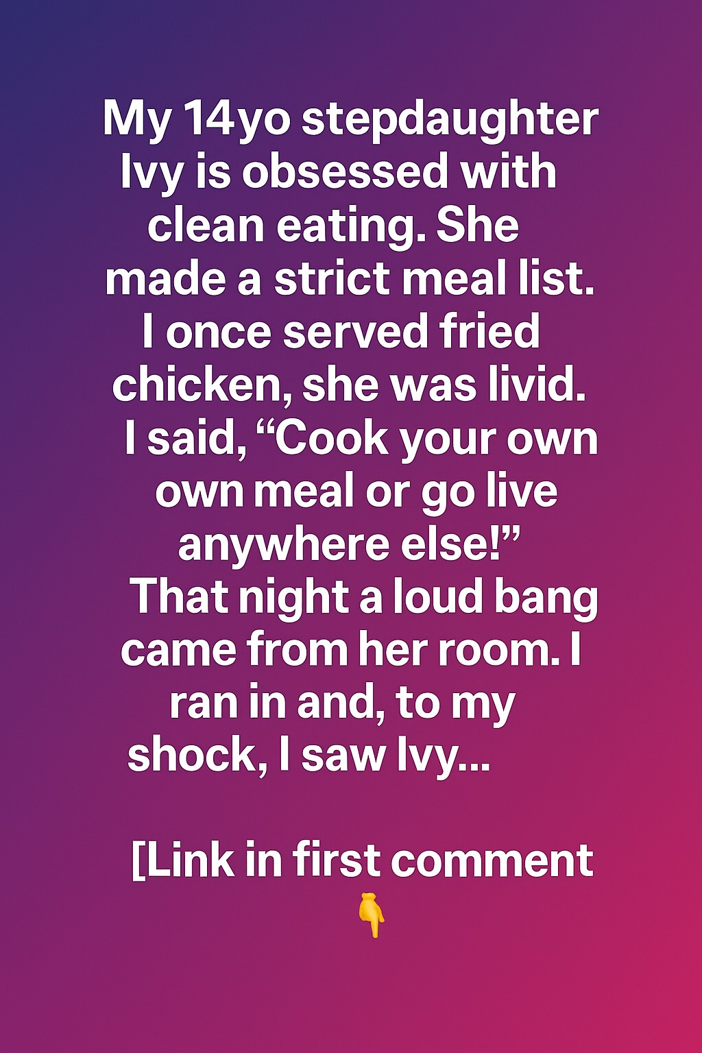 My 14-year-old stepdaughter Ivy became passionate about clean eating last year. She read labels, watched nutrition videos, and planned every meal like she was training for a marathon. At first, I admired her dedication, but slowly it began to affect our home. One evening, I served fried chicken, and she became upset, saying it didn’t fit her strict food rules. Frustrated and unsure how to help, I told her she could cook her own meals if ours didn’t work for her.