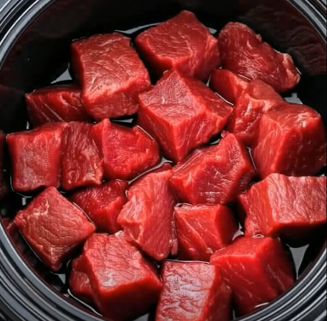 Begin with one pound of beef stew pieces, cut into even cubes for the best result. Place them in your slow cooker and add one can of cream of mushroom soup, one packet of onion soup mix, and one cup of sour cream. Gently mix until everything is well combined and creamy. If you prefer a lighter sauce, add a splash of broth or water. Cook on low for 6 to 8 hours or on high for about 4 hours, until tender and full of flavor.