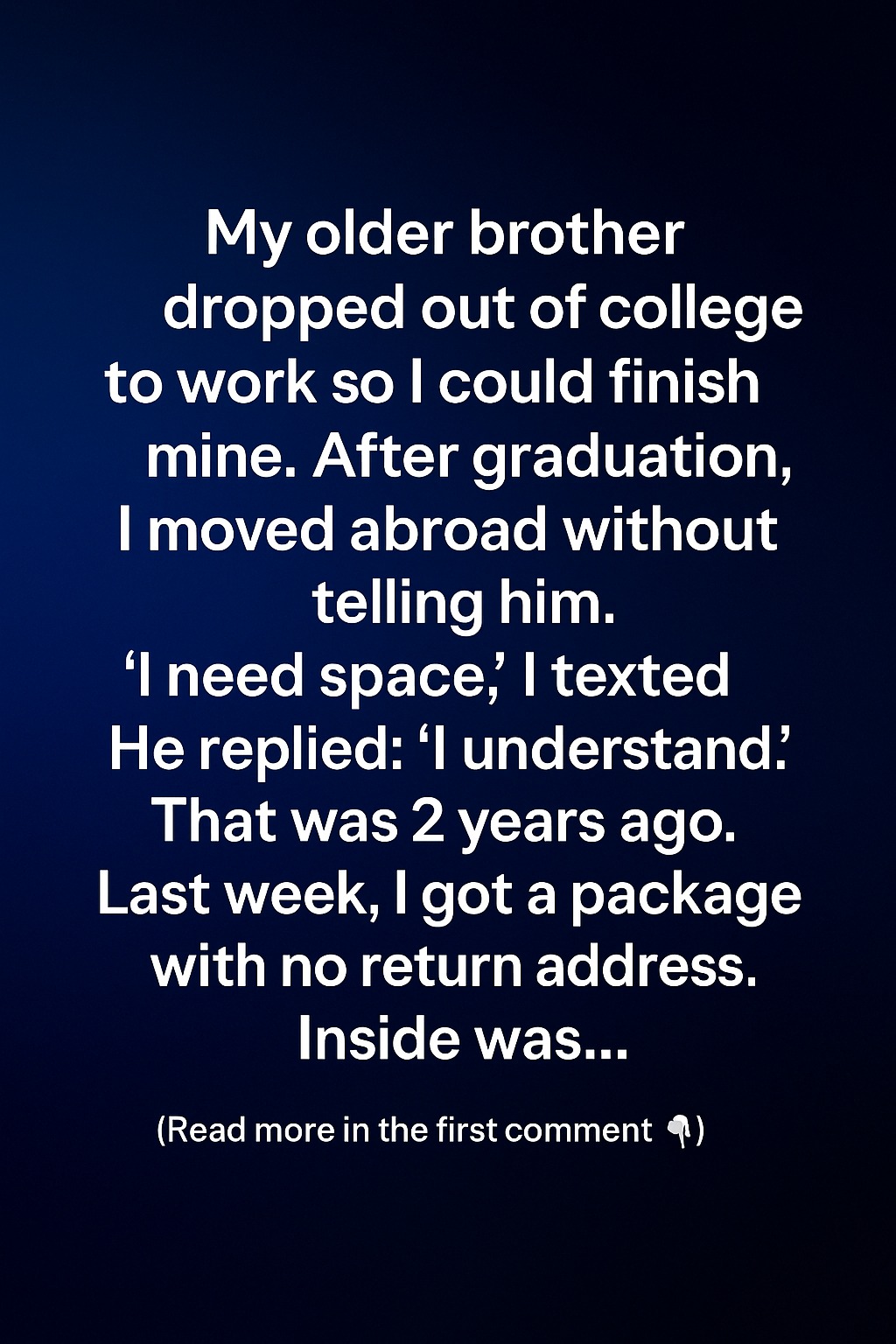 My older brother dropped out of college to work so I could finish mine. After graduation, I moved abroad without telling him. “I need space,” I texted. He replied, “I understand.” That was 2 years ago. Last week, I got a package with no return address. Inside was..a small wooden box and a folded letter. The handwriting was unmistakable—my brother’s. My heart tightened before I even opened it. The box held our childhood treasures: an old game token we used as “good luck” charm, a photo of us covered in mud after playing in the rain, and a tiny note I’d written him years ago saying, “Thank you for being the best big brother.” I hadn’t thought about that note in forever… but he clearly had.