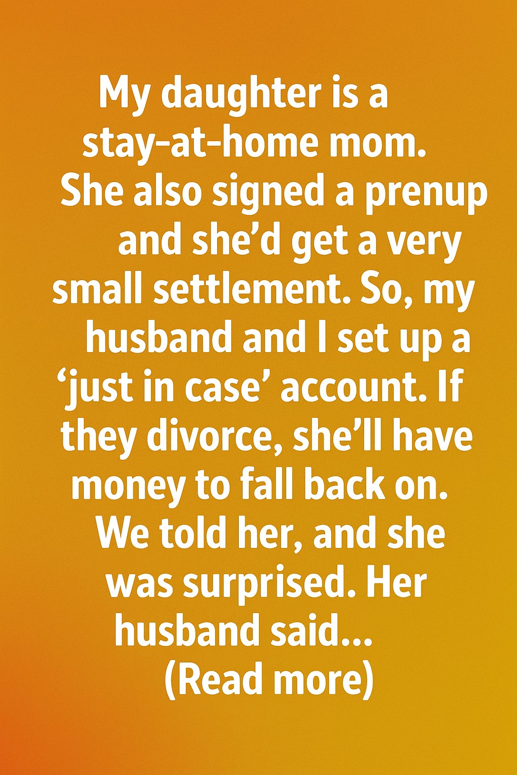 My daughter chose to be a stay-at-home mom, devoting her days to raising her little ones and caring for her home. She married young, and while she trusted deeply, she signed a prenup that offered only a small safety net. As parents, we admired her commitment, but we also understood life’s uncertainty. We wanted to support her without interfering in her marriage. So quietly, my husband and I began saving in a “just in case” fund for her future security.