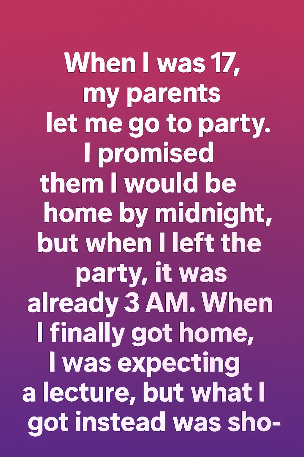 When I was 17, my parents let me go to a party. I promised them I would be home by midnight, but when I left the party, it was already 3 AM. When I finally got home, I was expecting a lecture, but what I got instead was sho— silence. The living room light was on, and my mom was sitting on the couch, wide awake, hands clasped tightly in her lap. My dad stood near the window, staring outside as if he had been watching every car that passed. When I stepped inside, neither of them scolded me. Instead, my mom breathed out shakily and said, “We were worried something happened to you.” There was no anger in her voice — only relief and fear mixed together.