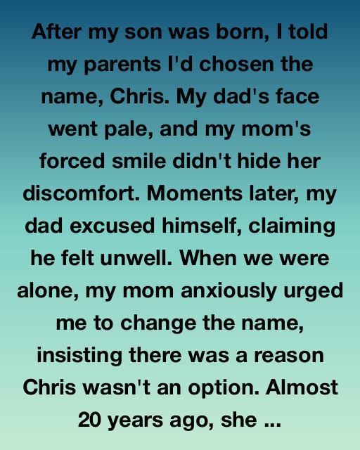 After my son was born, I told my parents I’d chosen the name Chris. My dad’s face went pale, and my mom’s forced smile didn’t hide her discomfort. Moments later, my dad excused himself, saying he felt unwell. When we were alone, my mom anxiously urged me to choose another name, insisting there was a reason Chris wasn’t an option. Almost twenty years ago, she explained, someone close to our family—also named Chris—had been part of a painful chapter in their lives. They never spoke of it again, and the name carried memories they had tried to leave behind.