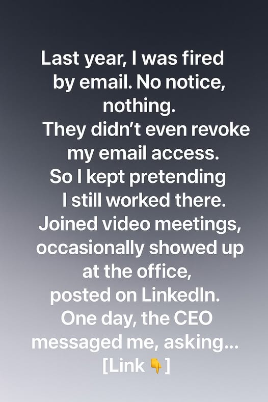 Last year, I received an unexpected email saying my job had ended. There was no meeting, no explanation, just a quiet message in my inbox. Strangely, my access to everything was still active, as if nothing changed. Unsure of what to do, I continued showing up in small ways. I attended virtual meetings and stayed present in the company’s routine.