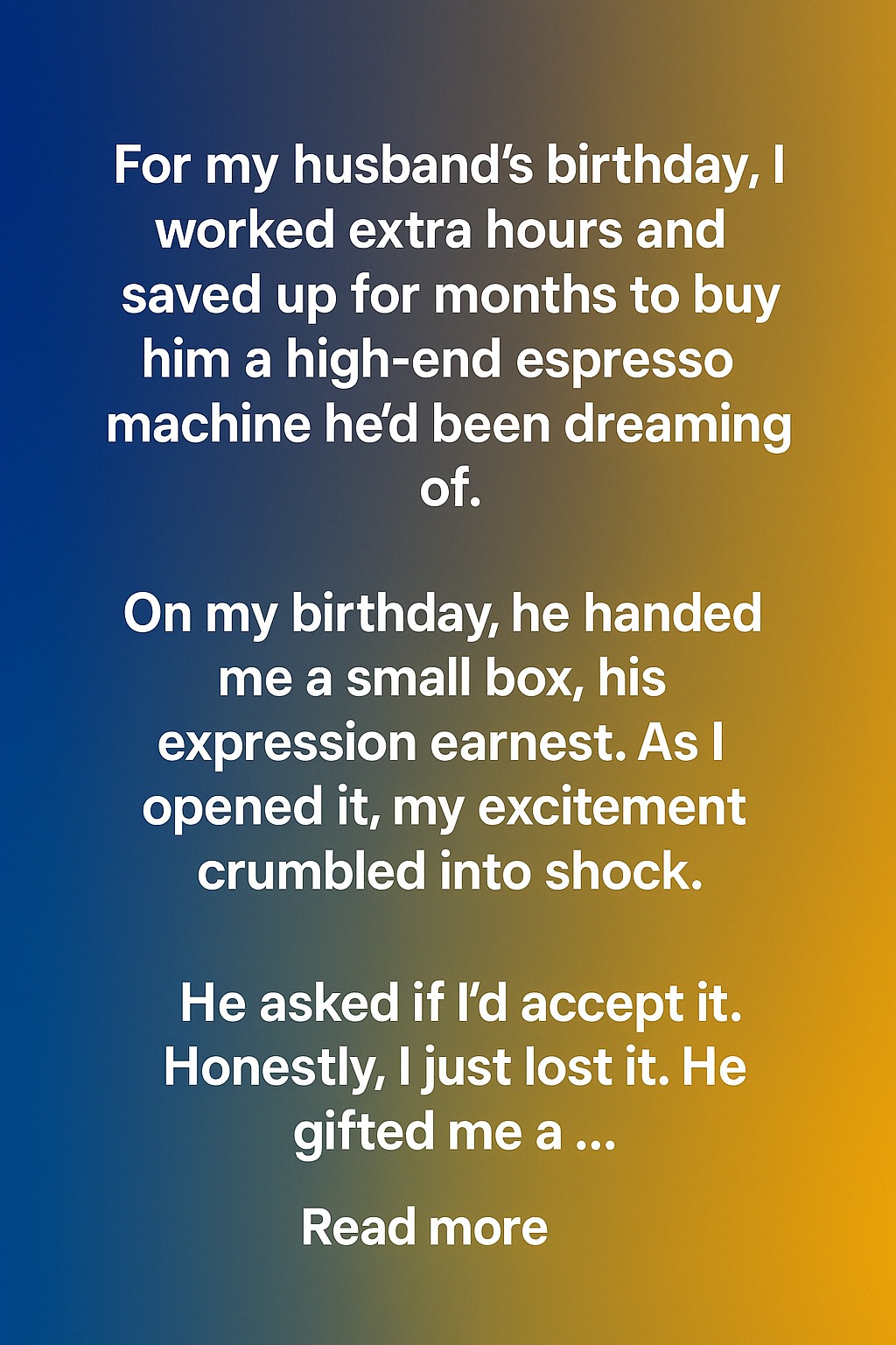 For my husband’s birthday, I worked extra hours and saved for months to buy him the espresso machine he had always dreamed of. It felt good to give him something that made him light up with joy. I believed gifts should come from the heart, from understanding what someone truly loves. That’s how I’d always shown care. I hoped he felt the same way about me.