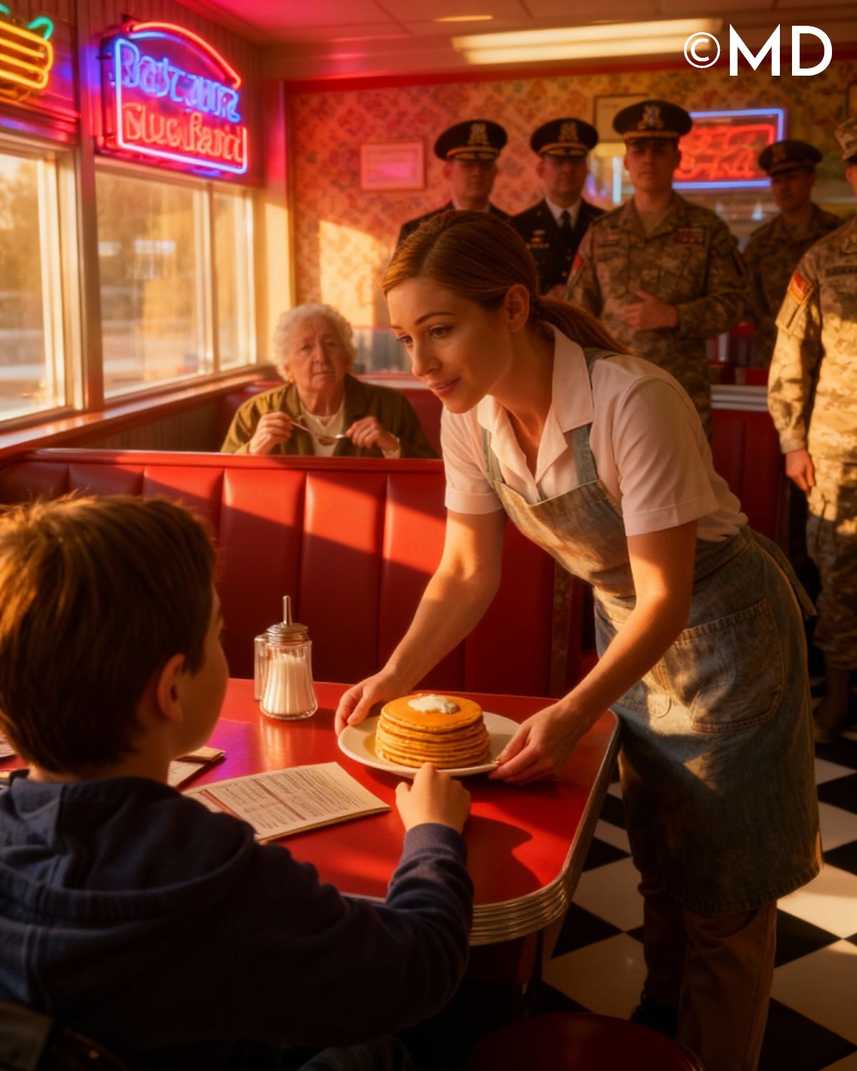 The letter revealed that the boy—Oliver—was the son of a deployed service member recently reassigned overseas. His mother worked long hours, and the family had been quietly struggling, unsure where to turn. Oliver had visited the diner because it felt warm and safe, and Jenny’s kindness had become the highlight of his mornings. The soldiers had come on behalf of Oliver’s father, who learned of her generosity through his son’s journal. He wanted to thank Jenny for offering care at a time when he could not be present.