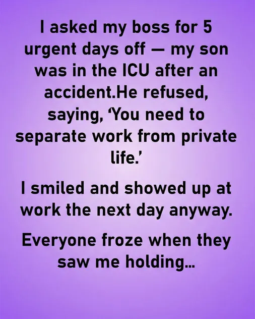 When my son, Liam, was admitted to the hospital after a serious accident, my world narrowed to a single point: his recovery. Machines beeped softly around his hospital bed, and I held his hand, promising he wasn’t alone. After a sleepless night in the waiting room, I called my boss, requesting five urgent days off to stay with my child. I expected concern or at least understanding. Instead, his reply was cold and rehearsed. “You need to separate work from your private life,” he said. The words stung more than I expected. I stared at the hospital corridor, unsure whether to argue or hang up. In the end, I simply said, “Understood,” and ended the call.