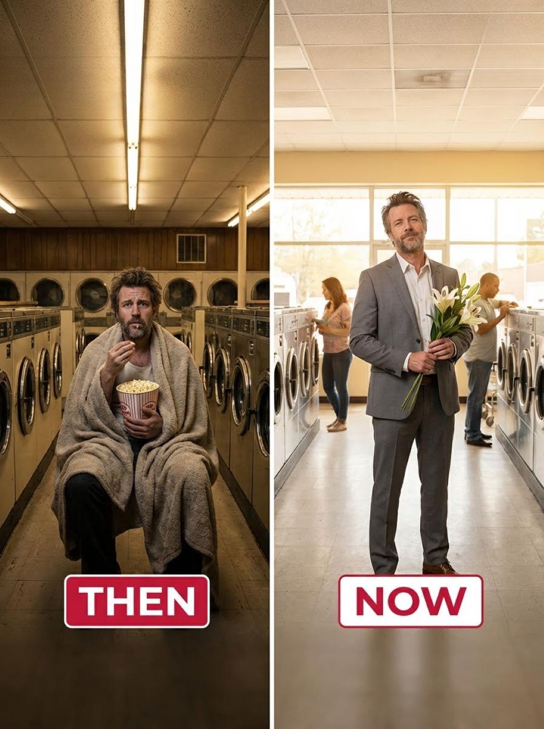 This year, everything was different. My mother had passed away after a long illness, and Christmas arrived quietly, heavy with absence. Standing alone in her kitchen, I debated whether to continue the tradition at all. Grief made even simple tasks feel overwhelming. But her words echoed in my mind, reminding me that the meal was never about her—it was about showing up. So I cooked what I could and drove to the laundromat alone, unsure of what I would find. When I walked inside, I barely recognized the man I remembered. He stood upright, dressed neatly, holding flowers, his expression full of emotion.
