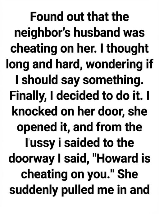 The words on the image lingered with me like a half-told confession, and I imagined the moment stretching far beyond the doorway. In my version, the neighbor—let’s call her Lena—had always been polite but distant, the kind of person who waved with a careful smile and kept her life trimmed to the edges. When I finally spoke the truth aloud, my voice sounded smaller than I expected, almost apologetic. I thought the hardest part would be saying the words. I was wrong. The hardest part was watching her face change, not into anger or disbelief, but into a quiet stillness that suggested she already knew something was broken, even if she didn’t know where the crack began.