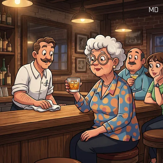 By the time the bartender served her third drink, his curiosity had grown too strong to ignore. Leaning closer with a friendly smile, he asked why she insisted on having only two drops of water in her Scotch every time. The woman chuckled, her eyes sparkling with humor, and answered in a playful tone that carried across the counter. She explained that at her age she had learned to enjoy life’s pleasures carefully — she could still appreciate a good drink, but if she added more water, she’d only end up making more trips back and forth, and tonight she preferred to stay put and enjoy the celebration.