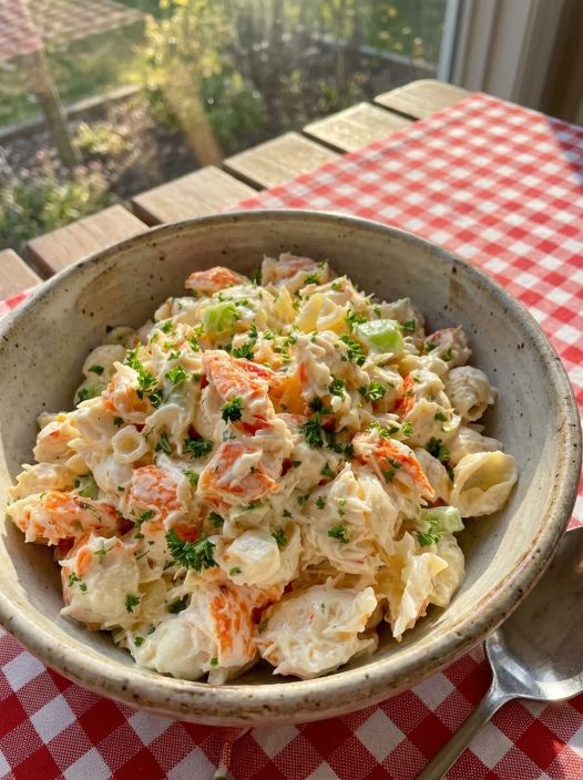 Some recipes remain popular not because they are trendy, but because they are reliable, comforting, and easy to enjoy at any time. Creamy crab-style seafood salad is one of those dishes. It doesn’t rely on complicated steps or rare ingredients, yet it consistently delivers satisfying flavor and texture. For many people, it’s a familiar favorite associated with casual lunches, potlucks, or simple meals prepared without stress. Its appeal lies in how effortlessly it fits into everyday life—quick to assemble, easy to adapt, and pleasant to eat whether served alone or alongside other dishes.