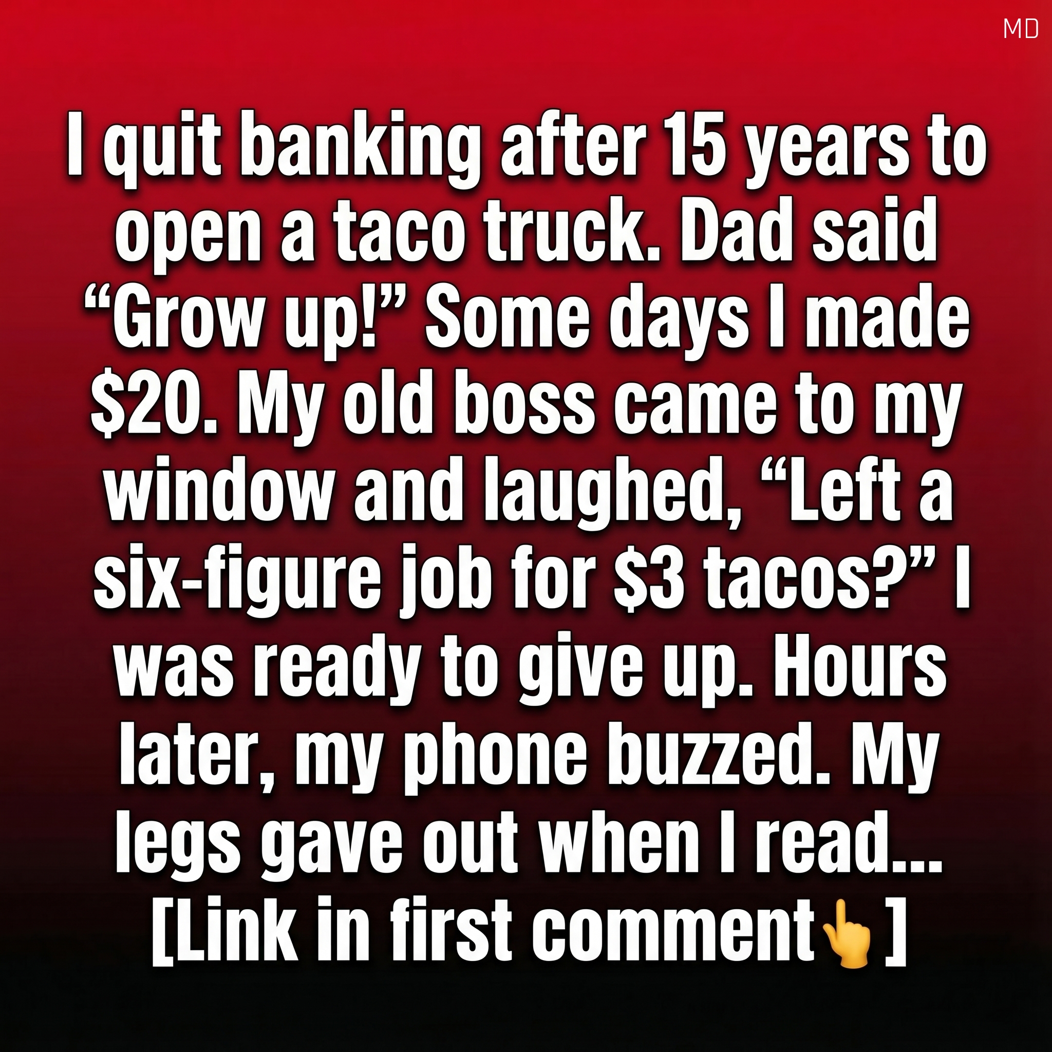 For fifteen years, I lived inside numbers—spreadsheets, projections, quarterly goals that never seemed to end. From the outside, it looked like success: a stable salary, a respected title, a predictable future. But inside, something felt quietly unfinished. Every morning, I would pass a small food truck parked near my office, watching the line of customers laugh, chat, and leave with something simple that made their day better. It planted a thought I tried to ignore—what if life could feel different?