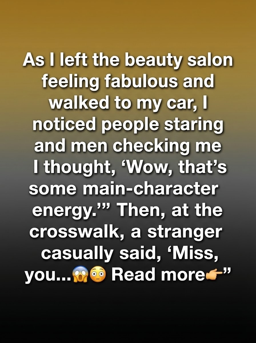I stepped out of the beauty salon feeling lighter than I had in weeks. The small changes—a fresh haircut, a subtle glow to my skin, the quiet care of someone taking time to make me feel polished—had lifted my mood more than I expected. As I walked toward my car, I noticed people glancing my way. A few smiles lingered longer than usual, and I caught my reflection in a shop window and smiled back at myself. For a brief moment, I felt confident, almost radiant, as if I had stepped into a version of myself that had been waiting patiently to be seen again. I told myself it was okay to enjoy that feeling without questioning it.