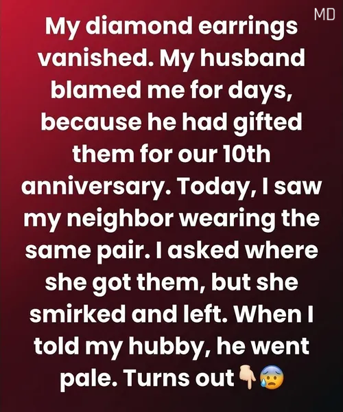 The day my diamond earrings went missing, I blamed myself first. I searched every drawer, retraced my steps, and even checked the laundry basket twice. They had been a special gift from my husband for our tenth anniversary—simple, elegant, and meaningful. When I told him they were gone, his reaction surprised me. Instead of helping me look, he grew frustrated and distant, reminding me how valuable they were and how careful I should have been. For days, a quiet tension filled our home, and I carried the weight of guilt, wondering how I could have been so careless.
