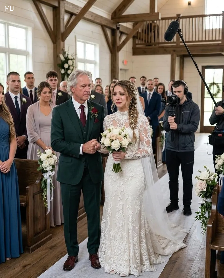 Just minutes before the ceremony, I stood behind the garden doors, my bouquet trembling in my hands. The space beside me—where my father should have been—remained empty. Then Daniel’s father stepped forward. With quiet strength and kindness, he offered me his arm and said, “You are not walking into this alone.” When the music began, I took his hand. The moment unfolded with grace, witnessed by guests and cameras alike. Daniel’s eyes filled with tears as I walked toward him, supported not by the family I was born into, but by the one I was choosing. It was not the entrance I had imagined—but it was honest, and it was enough.