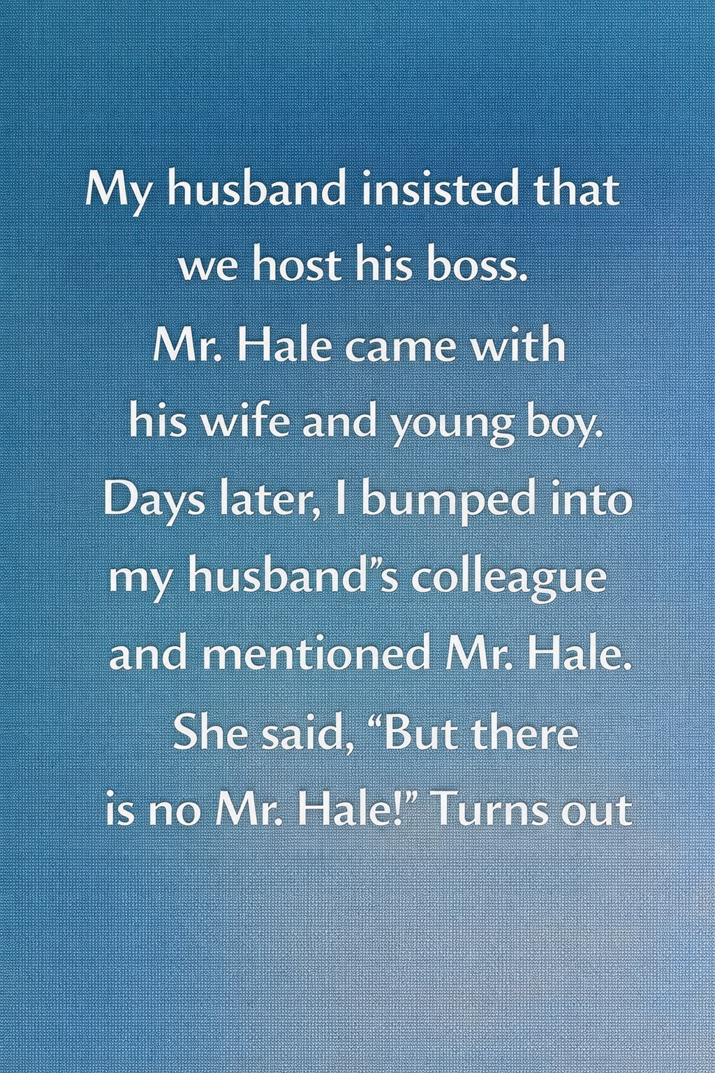 After dinner, life returned to its normal rhythm. A few days later, I ran into one of my husband’s colleagues at the grocery store. We chatted casually, and I mentioned how nice it had been to meet Mr. Hale and his family. She looked at me with a puzzled expression and laughed softly, assuming I was joking. “But there is no Mr. Hale,” she said. Seeing my confusion, she explained that no one by that name worked in her department, nor had she ever heard of him holding a leadership role at the company. I laughed it off awkwardly at the time, but the comment followed me home, settling uncomfortably in my thoughts.