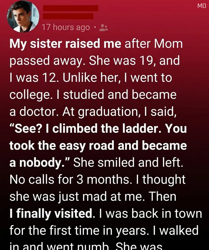 As the years passed, our paths slowly began to diverge. I focused on my studies, determined to build a different life. With her quiet support behind the scenes, I made it to college, then medical school. Each milestone felt like a victory, but I rarely stopped to consider who had made those victories possible. By the time I graduated, I had become someone I once only dreamed of being. In a moment meant to celebrate, I said something careless—words that were shaped by pride instead of gratitude. She didn’t argue. She simply smiled, a calm, unreadable expression, and walked away.